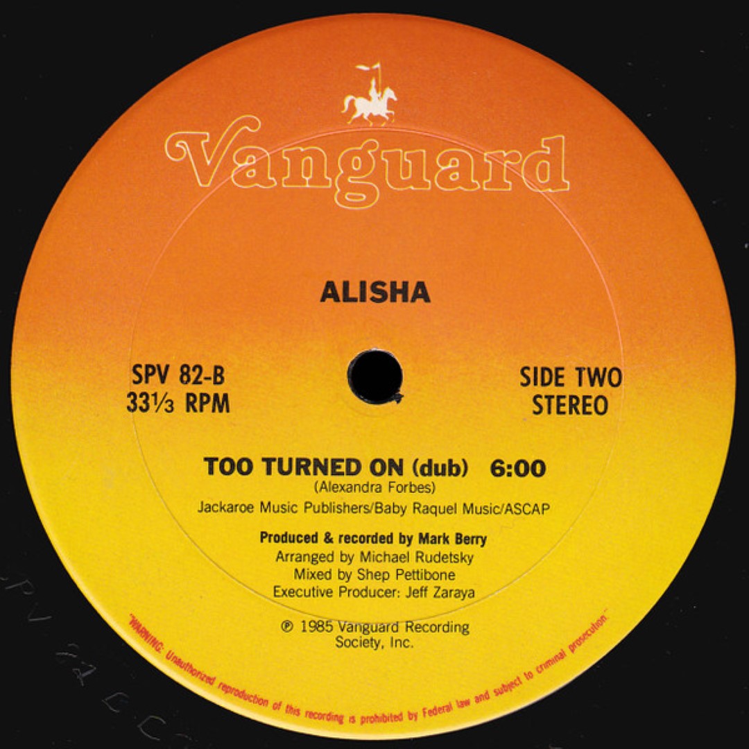 „Too Turned On“ (1985) არის Alisha-ს ერთ-ერთი ყველაზე ცნობილი სინგლი, რომელიც წარმოადგენს 80-იანი წლების ფრისტაილ-პოპის კლასიკურ ნიმუშს. ტრეკი გამოირჩევა სინთზე დაფუძნებული მელოდიებით, ენერგიული ბითითა და მკაფიო, დამამახსოვრებელი ვოკალით.