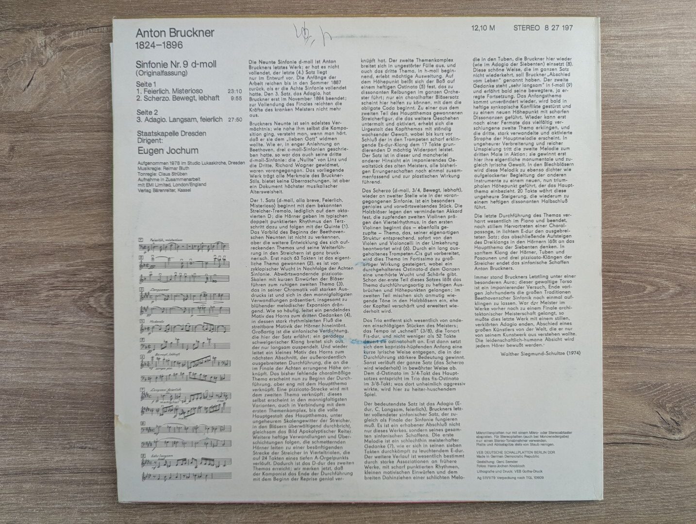 Sinfonie Nr. 9 in D mino – ბრუკნერის ბოლო სრულმეტრაჟიანი სიმფონია, რომელმაც სიმფონიური ტრადიცია და ორკესტრალური გრანდიოზულობა ახალ მწვერვალზე აიყვანა. ნაწარმოები ხასიათდება ეპიკური მასშტაბით, ღრმა ემოციური დრამატურგიით და მკაფიო ჰარმონიული დიაპაზონით. Eugen Jochum-ის ინტერპრეტაცია, Staatskapelle Dresden-ის შესრულებით, წარმოჩენს ყველა სიღრმესა და დეტალს – მდიდარი ორკესტრაცია, დინამიკური კონტრასტები და შესანიშნავი ბალანსი ქმნიან სრულყოფილ გამოცდილებას ბრუკნერის შემოქმედების სამყაროში.