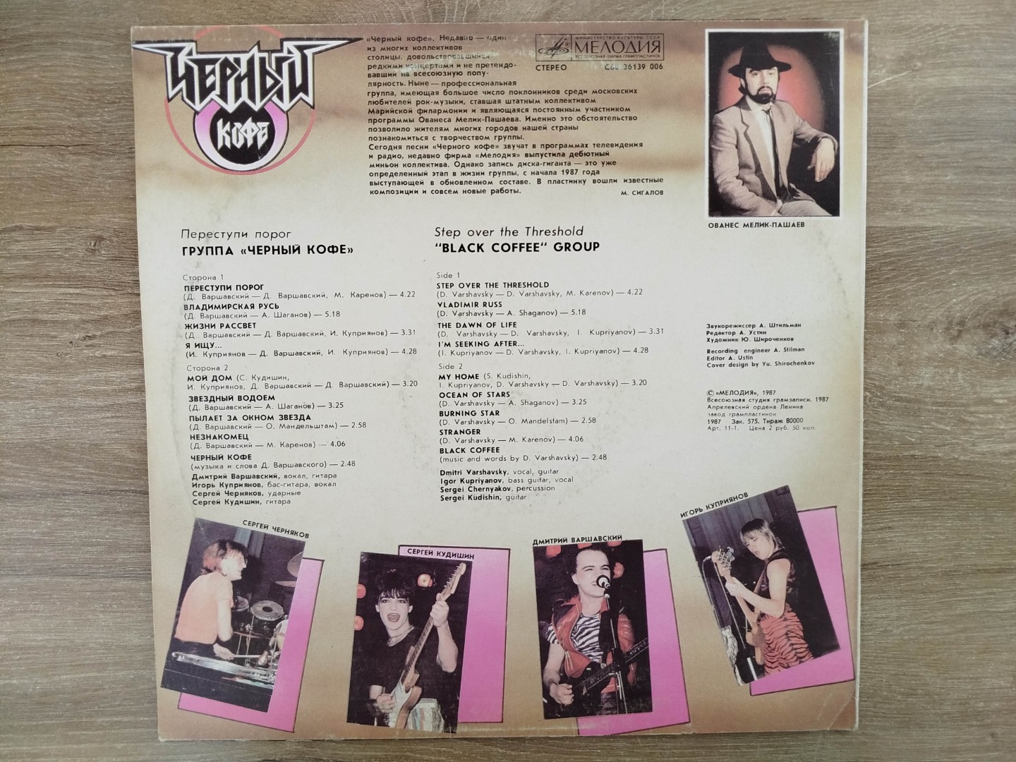 რუსული მძიმე მეტალ ბენდის, “Black Coffee – ს” (Черный Кофе), ალბომი, სახელწოდებით “Step Over The Threshold”, რომელიც გამოვიდა 1987 წელს. გასაყიდი ვინილი წარმოადგენს 1987 წლის “მელოდიას” საბჭოთა პრესს, ფირფიტაც და ყდაც ორივე ძალიან კარგ მდგომარეობაშია.