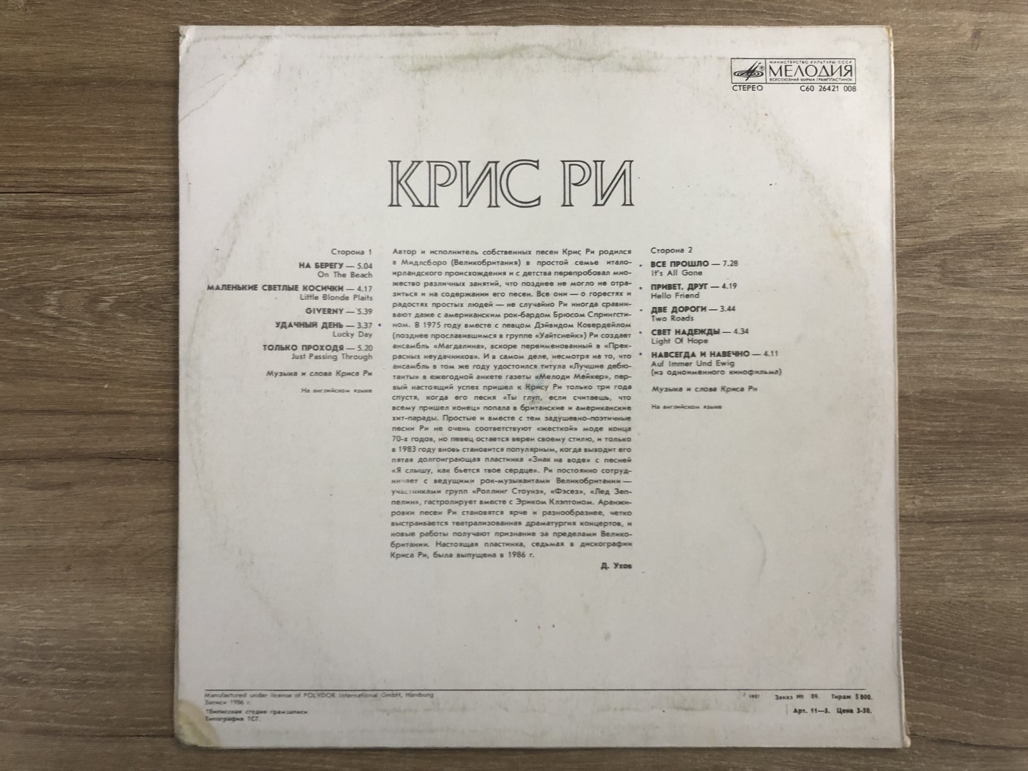 Chris Rea(1978) – მუსიკოსის სადებიუტო ალბომია. მასში შესულია სიმღერა „Fool (If You Think It’s Over)“, რომელმაც საერთაშორისო აღიარება მოუტანა და კრიტიკოსების მხრიდან დადებითი შეფასება მიიღო.