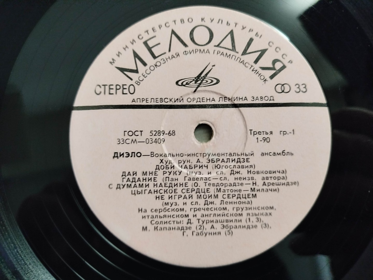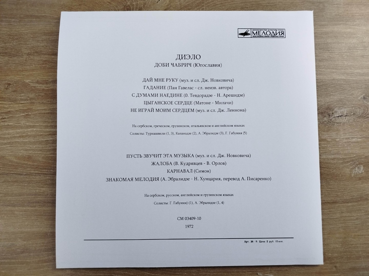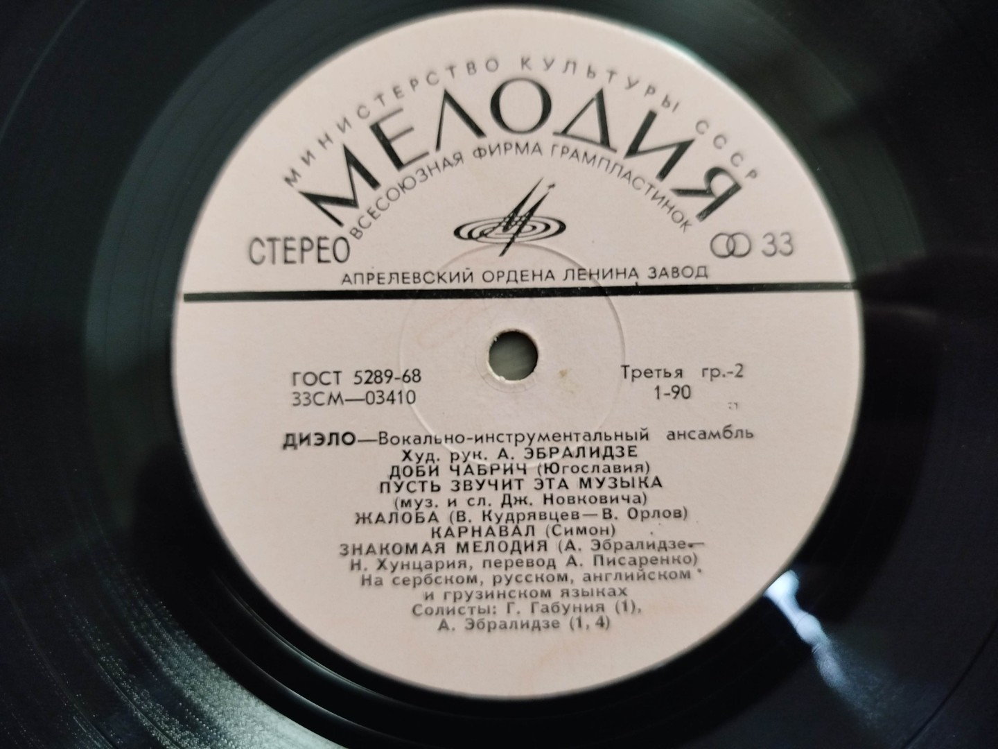 ცნობილი ქართული ანსამბლის, “დიელოს”, ვინილი, რომელზეც ჩაწერილია კომპოზიციები შესრულებული “დიელოსა” და იუგოსლაველი არტისტის, დობი ჩაბრიჩის, მიერ. აღნიშნული ვინილი გამოვიდა 1972 წელს. გასაყიდი ვინილი არის 1968 წლის გამოშვება. ვინილი ძალიან კარ მდგომარეობაშია, ყდა დაზმადენულია თანამედროვე პოლიგრაფიით.