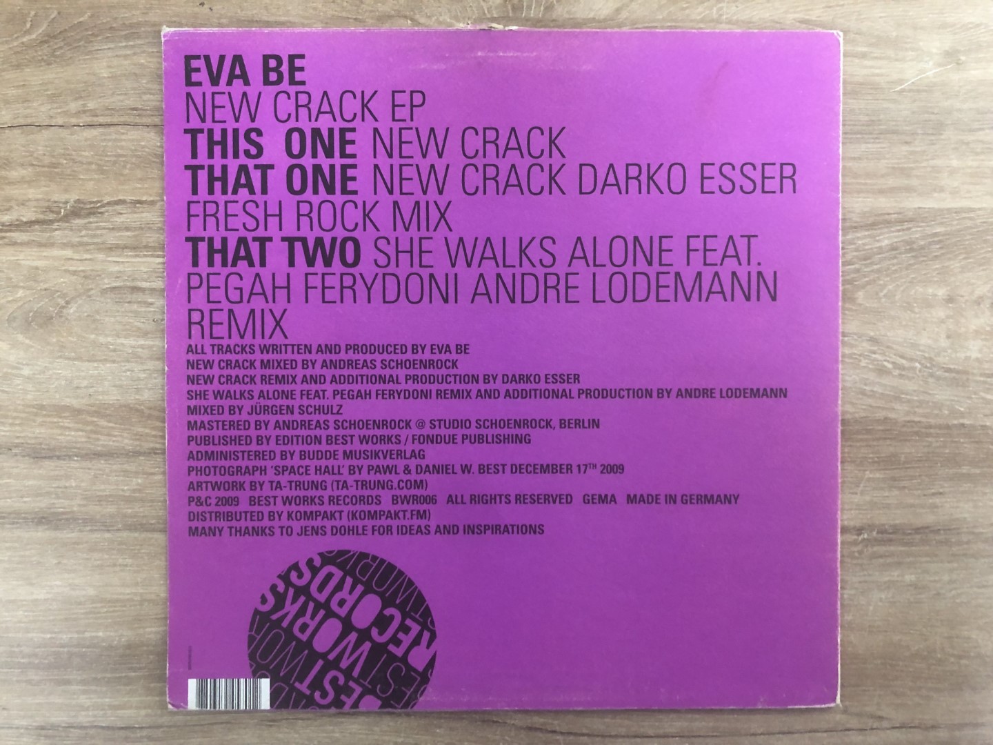 „New Crack EP“ არის Eva Be-ის ერთ-ერთი მნიშვნელოვანი სინგლი, რომელიც გამოიცა დამოუკიდებელ ანდერგრაუნდ ლეიბლზე. EP აერთიანებს ელექტრონული მუსიკის ექსპერიმენტულ და soulful ელემენტებს, ბეისლაინზე ორიენტირებულ ჰიპნოტურ რითმებს და ნაზ, მელოდიურ ტექსტურებს.