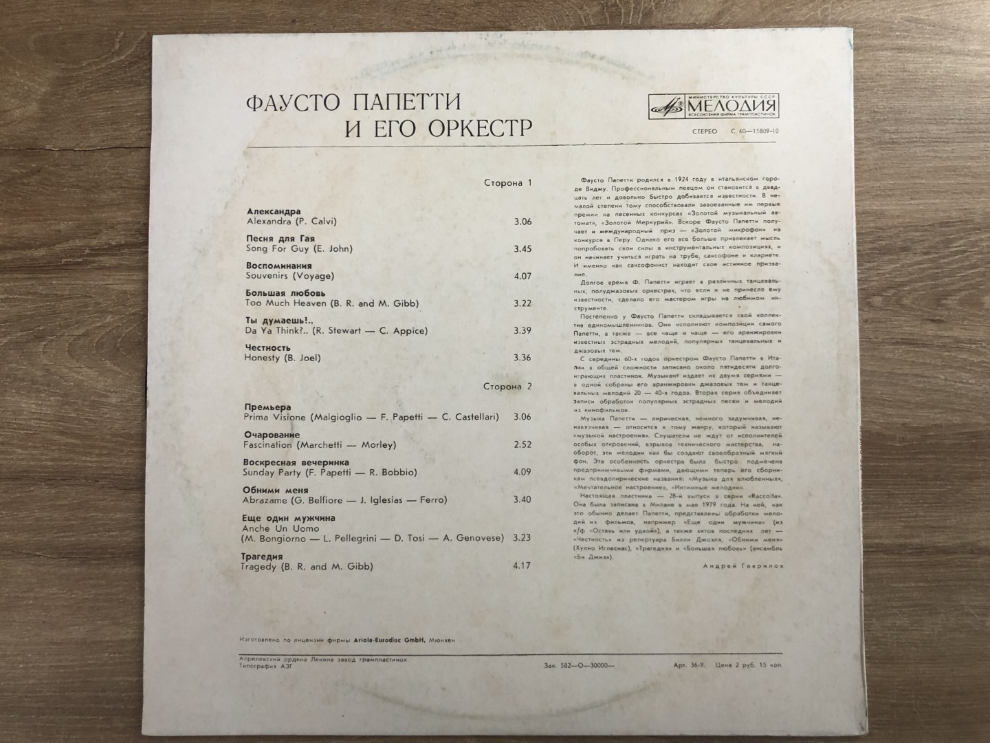 Fausto Papetti იყო იტალიელი საქსაფონისტი და კომპოზიტორი, რომელმაც დიდ წარმატებას მიაღწია 1960-1980-იან წლებში. პაპეტის განსაკუთრებული სტილი – ლირიკული საქსოფონის სოლოები და მელოდიური ინტერპრეტაციები – მას პოპულარულს ხდიდა როგორც ევროპაში, ისე იაპონიასა და ლათინურ ამერიკაში.
