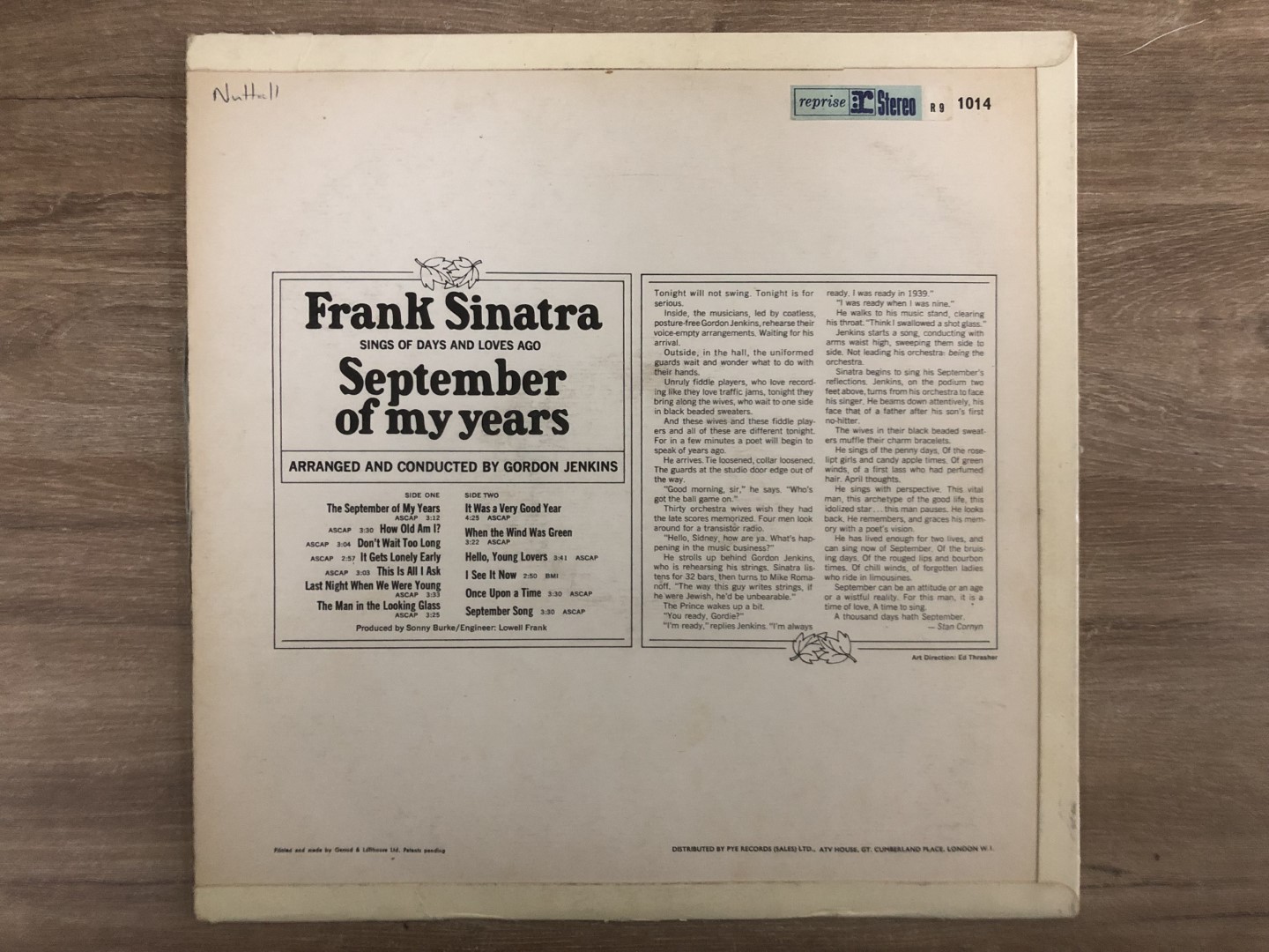 „September Of My Years“ (1965) არის ალბომი, რომელიც ასახავს Sinatra-ს შემოქმედების ერთ-ერთ უფრო ინტიმურ და რეფლექსიურ მხარეს. ალბომში თავმოყრილია ნამუშევრები, რომლებიც გამოხატავენ დროის სვლას, გამოცდილებასა და ცხოვრებაში მიღებულ გაკვეთილებს, რასაც ემატება კლასიკური ჯაზური და ორკესტრული ჰარმონიზაცია.