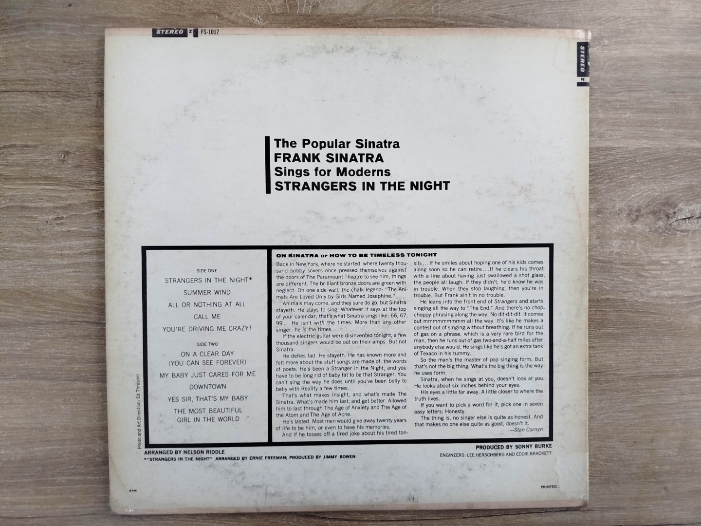 „Strangers In The Night“ (1966) არის ფრენკ სინატრას ერთ-ერთი ყველაზე ცნობილი და წარმატებული ალბომი, ჩაწერილი პოპისა და ჯაზ-პოპის სტილში და გამოშვებული Reprise Records-ზე. ალბომმა სინატრას კარიერაში ახალი კომერციული პიკი მოიტანა, ხოლო სათაურის სიმღერა მისი ერთ-ერთი ყველაზე ამოსაცნობი ჰიტი გახდა.