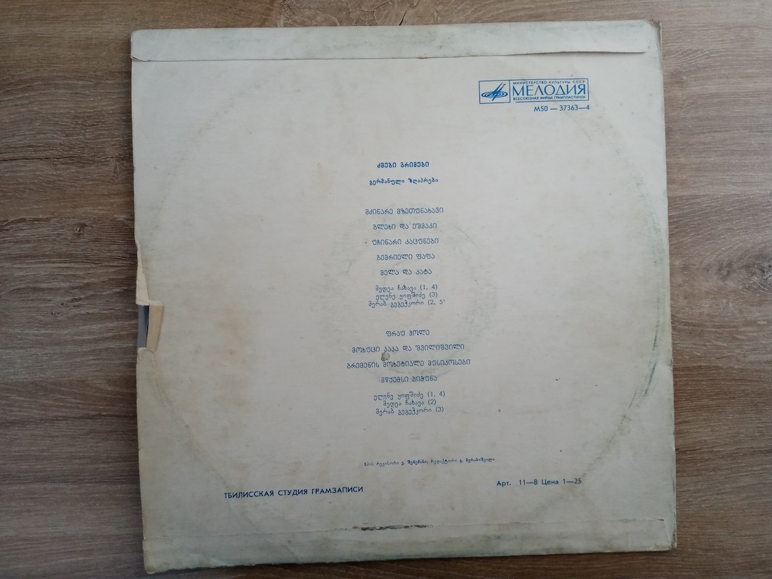 საბჭოური გამოშვების ვინილი, რომელზეც ჩაწერილია ცნობილი გერმანული ზღაპრები ქართულ ენაზე, აღნიშნულ კრებულში შედის ყველა ბავშვისთვის საყვარელი ზღაპარი “ბრემენის მოხეტიალე მუსიკოსები”.  ვინილის ფირფიტაც და ყდაც ორივე ძალიან კარგ მდგომარეობაშია.