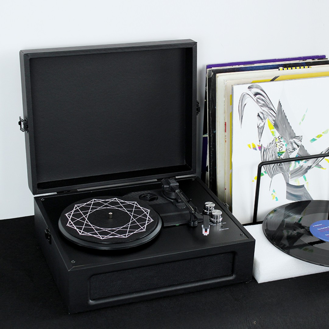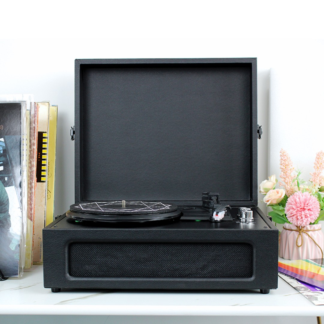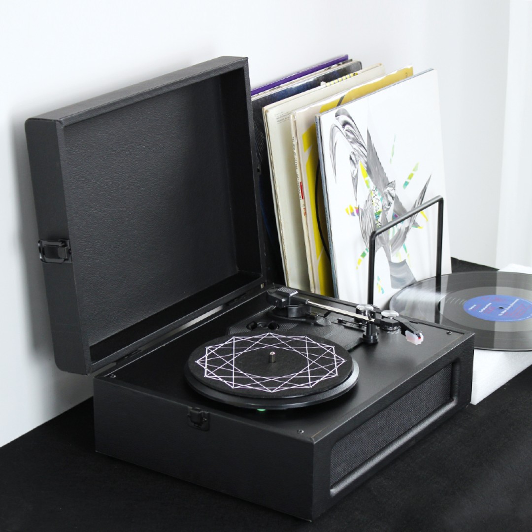 GOKA-ს შავი ფერის ფირსაკრავი – აქვს ორი ჩაშენებული დინამიკი, რაც შესაძლებლობას გაძლევთ დაუკავშირდეთ ვინილების საკრავს Bluetooth-ით და სმარტ ფონიდან ჩართოთ სასურველი მუსიკა. GOKA უკრავს სამივე ზომის ფირფიტას (7/10/12), აქვს 3 სიჩქარე 33 1/3, 45, 78. დამატებით – AUX IN ბუდე და RCA პორტი, მათი საშუალებით შეგიძლიათ დაუკავშიროთ სხვა აუდიო სისტემას, ასევე აქვს ყურსასმენის 3,5 მმ ჯეკი.