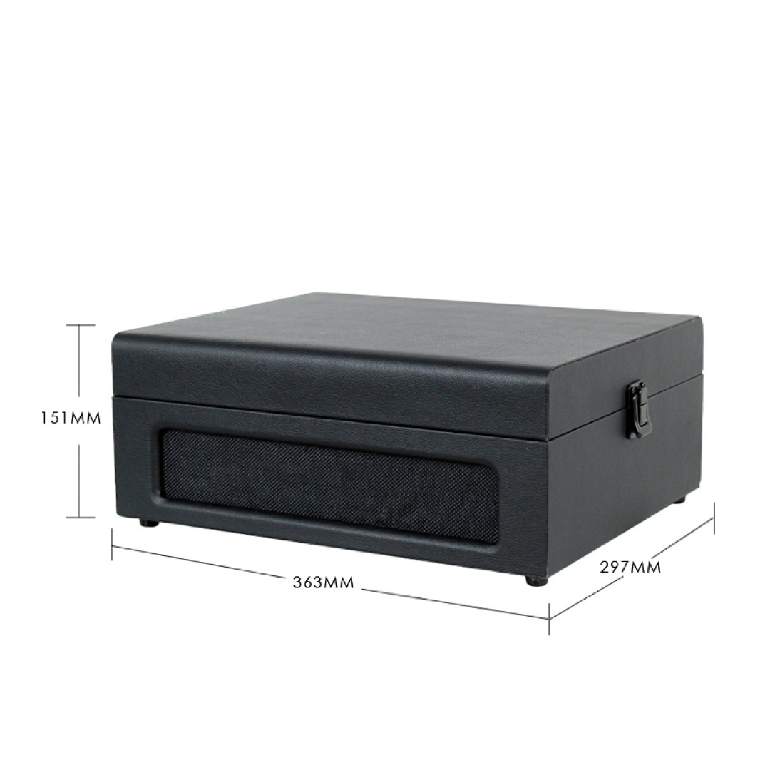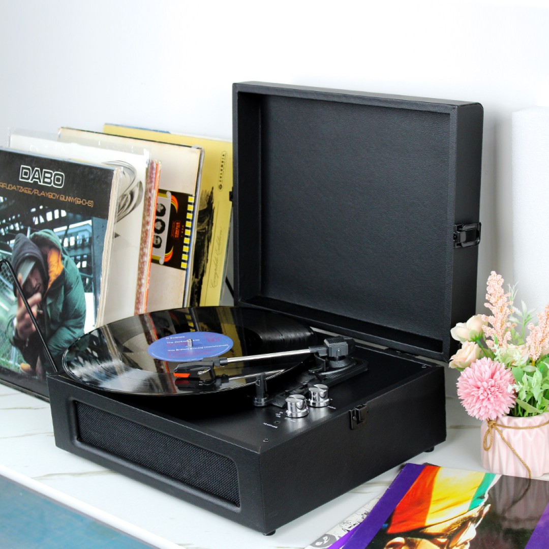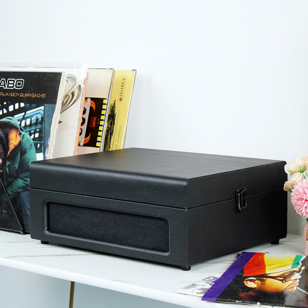 GOKA-ს შავი ფერის ფირსაკრავი – აქვს ორი ჩაშენებული დინამიკი, რაც შესაძლებლობას გაძლევთ დაუკავშირდეთ ვინილების საკრავს Bluetooth-ით და სმარტ ფონიდან ჩართოთ სასურველი მუსიკა. GOKA უკრავს სამივე ზომის ფირფიტას (7/10/12), აქვს 3 სიჩქარე 33 1/3, 45, 78. დამატებით – AUX IN ბუდე და RCA პორტი, მათი საშუალებით შეგიძლიათ დაუკავშიროთ სხვა აუდიო სისტემას, ასევე აქვს ყურსასმენის 3,5 მმ ჯეკი.