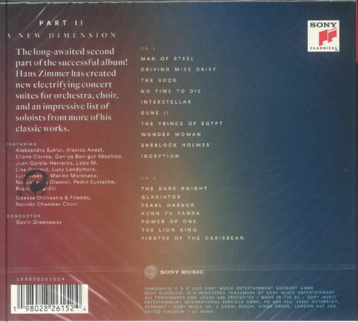 „The World Of Hans Zimmer Part II: A New Dimension“ (2025) არის კონცეპტუალური ალბომი და საკონცერტო პროექტი, რომელიც აგრძელებს Zimmer-ის მუსიკალური სამყაროს გადაფასებას ახალი არანჟირებებითა და ორკესტრული ხედვით. ალბომში წარმოდგენილია მისი საკულტო კინოთემების ახალი ვერსიები, შესრულებული სიმფონიური ორკესტრის, ქორისა და თანამედროვე ელექტრონული ელემენტების შერწყმით.