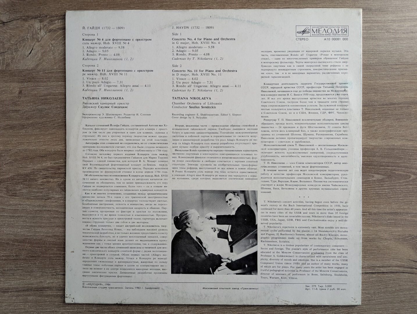 იოზებ ჰაიდნი (Joseph Haydn) – ავსტრიელი კომპოზიტორი, კლასიკური ეპოქის ერთ-ერთი უდიდესი ფიგურა, რომელიც განთქმულია თავისი სიმფონიებით, სონატებითა და კონცერტებით. ტატიანა ნიკოლაევა (Tatiana Nikolaeva) გამორჩეული რუსი პიანისტი და დირიჟორი. Lithuanian Chamber Orchestra ლიტვური კამერული ორკესტრი, ცნობილი თავისი კლასიკური რეპერტუარის დახვეწილი შესრულებით. საულიუს სონდესკისი (Saulius Sondeckis) ლიტველი დირიჟორი, ვისი ხელმძღვანელობით ორკესტრი აღწევს გამორჩეულ ინტერპრეტაციულ ხარისხს.