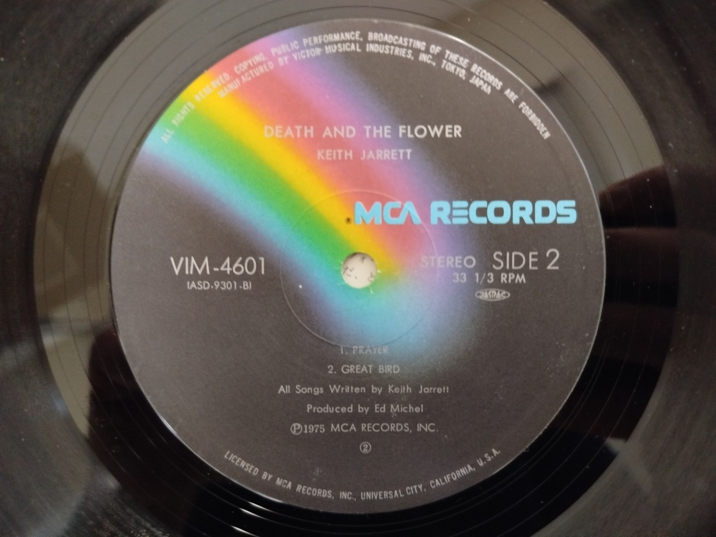ამერიკელი პიანისტისა და კომპოზიტორის Keith Jarrett – ის, ალბომი, სახელწოდებით “Death And The Flower”, რომელიც გამოვიდა 1974 წელს. გასაყიდი ვინილი წარმოადგენს 1975 წლის იაპონურ გამოშვებას, რომელსაც თან მოჰყვება ე.წ. ობი. ვინილის ფირფიტაც, ყდაც და ობიც სამივე ძალიან კარგ მდგომარეობაშია.