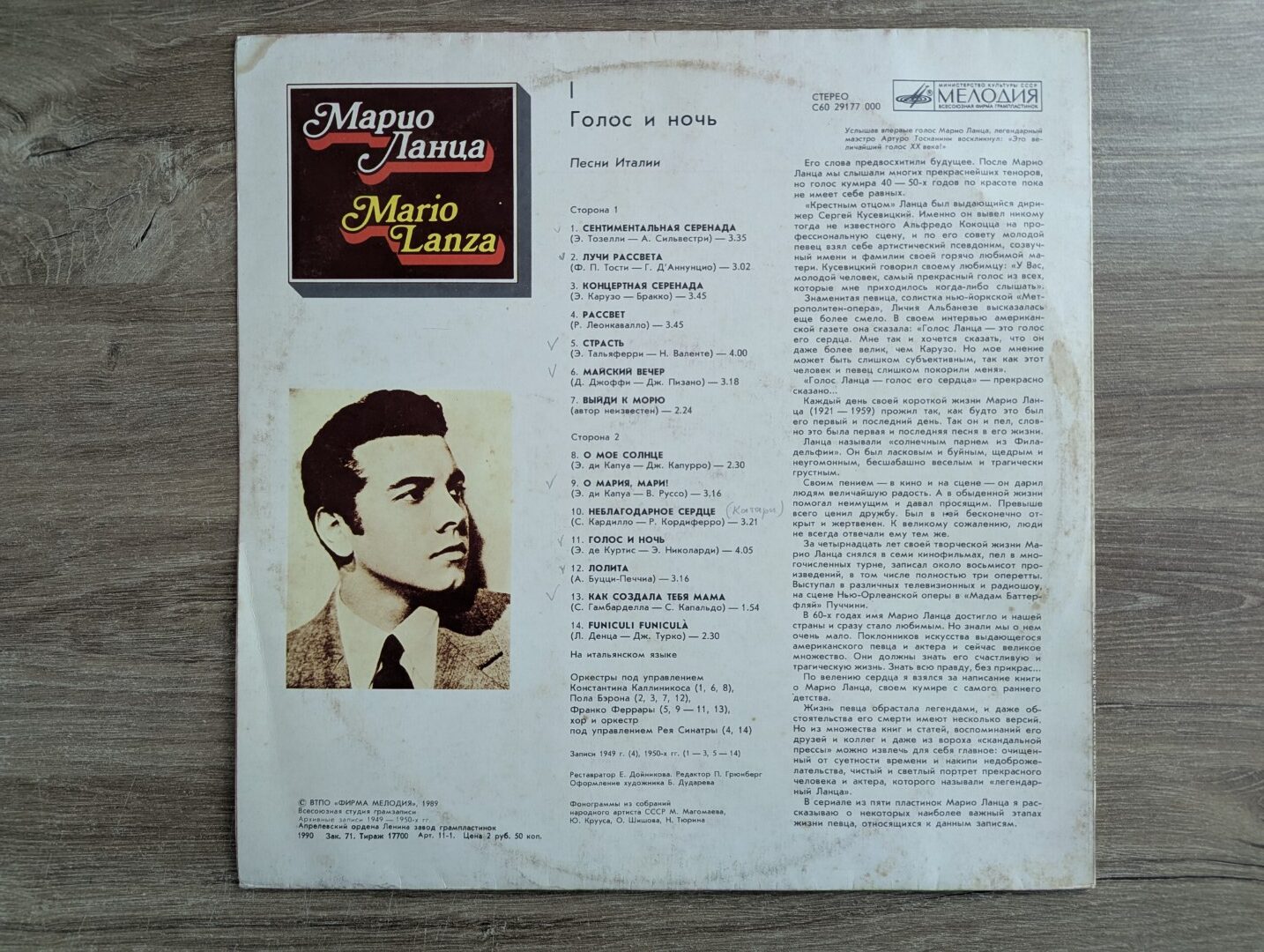 Voice and Night – წარმოადგენს მარიო ლანცას შესრულებების კრებულს, სადაც გაერთიანებულია ლირიკული და დრამატული არიები და სიმღერები. ალბომი ასახავს მის ვოკალურ მრავალფეროვნებას – ნაზ, მელოდიურ ფრაზირებასა და ძლიერ, ემოციურად დატვირთულ შესრულებას შორის ბალანსს. ეს ჩანაწერი მნიშვნელოვანი მაგალითია ლანცას არტისტული სტილისა და მისი გავლენისა პოპულარულ და ოპერულ მუსიკას შორის საზღვარზე.