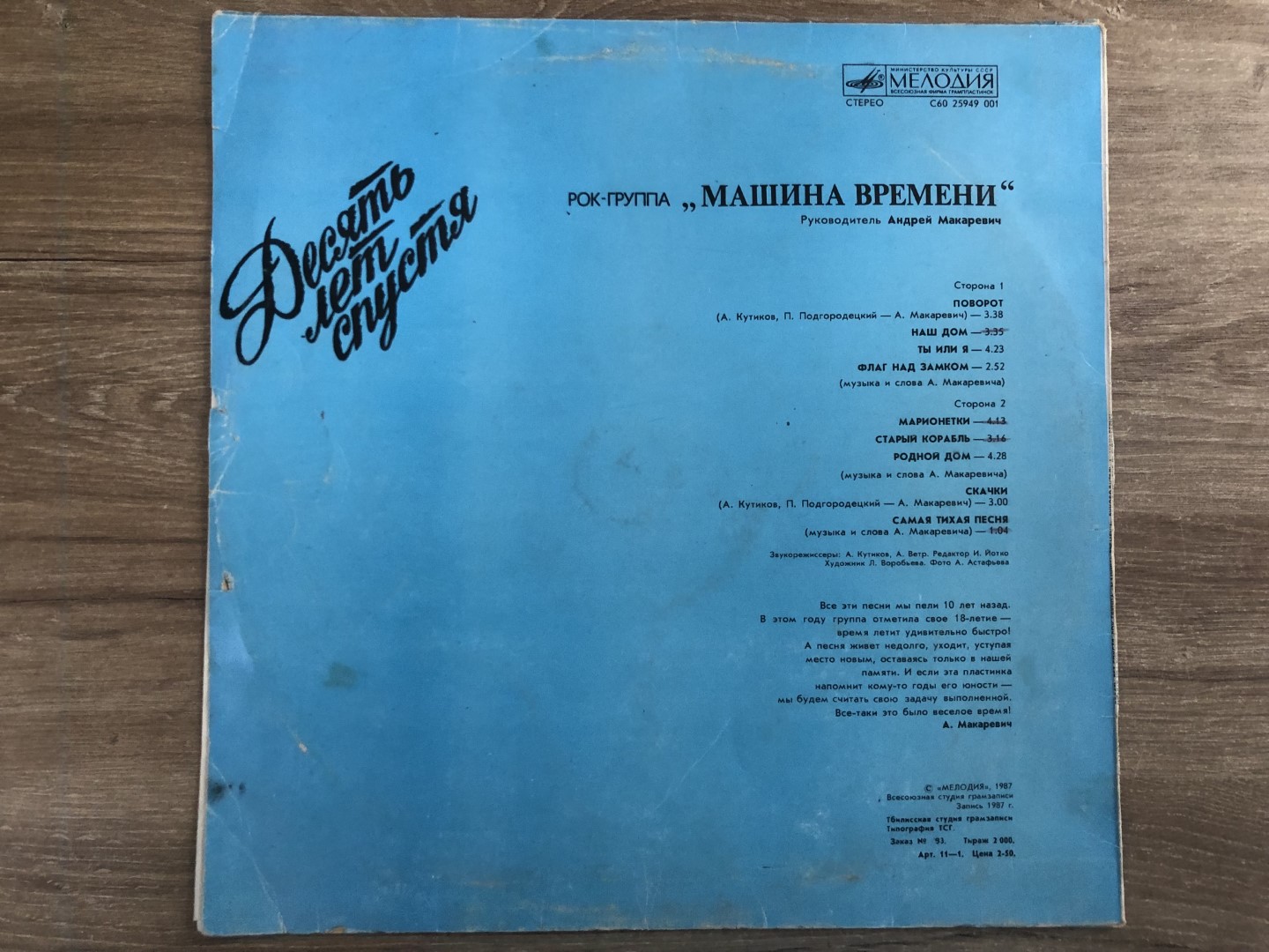 „Десять Лет Спустя“ (1979, ოფიციალურად გამოცემული 1981 წელს) – ჯგუფის ერთ-ერთი საკულტო ალბომია, რომელიც აჯამებს ბენდის ათწლეულს და ამავდროულად ახალ სტილისტურ ეტაპსაც აღნიშნავს. ალბომი იქცა „Машина Времени“-ს ისტორიის სიმბოლოდ და საბჭოთა როკ-თაობისთვის ერთგვარ მანიფესტად.