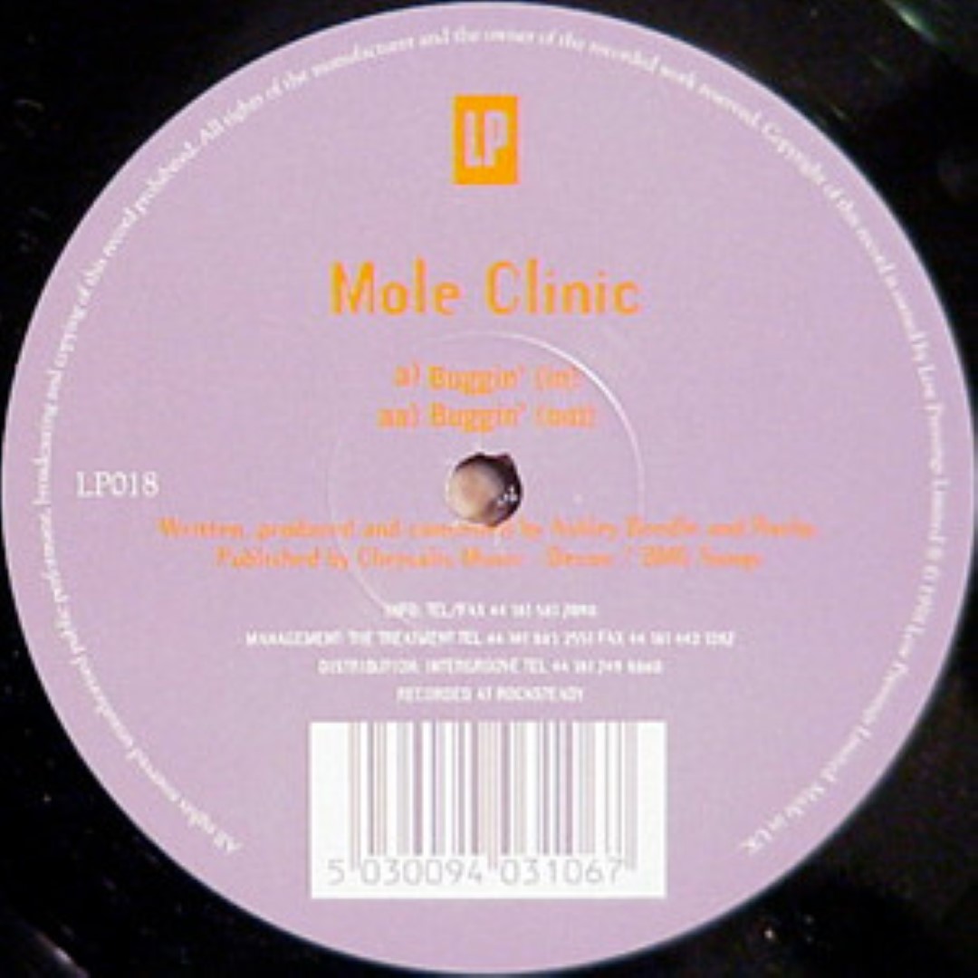 “Buggin’” (დაახლ. 1990-იანები) Mole Clinic-ის ერთ-ერთი ყველაზე ცნობადი სინგლია, რომელიც ჰაუს ბითს, რბილ ბეისლაინის მოძრაობას და დრაივულ ვოკალურ სემპლებს იყენებს. ტრეკი მნიშვნელოვანი ჩანაწერია მათი კატალოგისთვის, რადგან ზუსტად ასახავს იმ პერიოდში ბრიტანული ჰაუსის განვითარებულ, გრუვზე ორიენტირებულ ტონს.