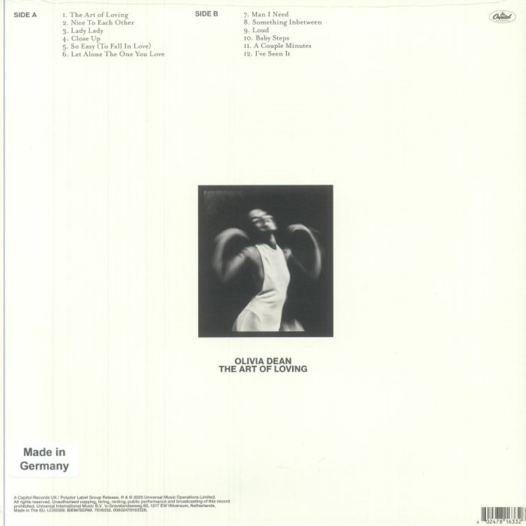 The Art Of Loving (2023) – არტისტის ერთ-ერთი მნიშვნელოვანი გამოშვებაა. ალბომი გამოირჩევა სოულისა და თანამედროვე პოპის შერწყმით, დახვეწილი პროდაქშენითა და ინტიმური ატმოსფეროთი. ეს ნამუშევარი აჩვენებს Olivia Dean-ის როგორც ვოკალისტისა და ავტორის შემოქმედებით ზრდას. ვინილი არის სრულიად ახალი.