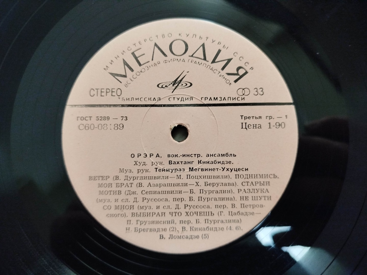 ცნობილი ქართული ანსამბლის, “ორერას”, ვინილი , რომელიც გამოვიდა 1976 წელს. აღნიშნულ ვინილზე ჩაწერილია მრავალი ცნობილი სიმღერა “ორერას” შესრულებით. გასაყიდი ვინილი ფირფიტას აღენიშნები მცირედი შიპი, ყდა დამზადებულია თანამედროვე პოლიგრაფიით.
