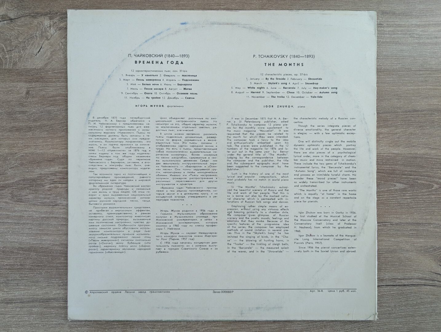 The Season – ფორტეპიანოსთვის შექმნილი ციკლი, რომელიც შედგება 12 მცირე პიესისგან და ასახავს წლის თითოეულ თვეს. ეს ნამუშევარი ჩაიკოვსკის ერთ-ერთი ყველაზე პოეტური და ლირიკული ქმნილებაა, სადაც თითოეული ნაწილი განსხვავებულ განწყობასა და ატმოსფეროს ქმნის – ზამთრის სიწყნარიდან ზაფხულის სიცოცხლით სავსე პეიზაჟებამდე. იგორ ჟუკოვის შესრულება გამოირჩევა სიფაქიზით, დინამიკური ნიუანსებითა და მუსიკალური სახეების მკაფიო წარმოჩენით, რაც ამ ციკლს განსაკუთრებულ ემოციურ სიღრმეს სძენს.