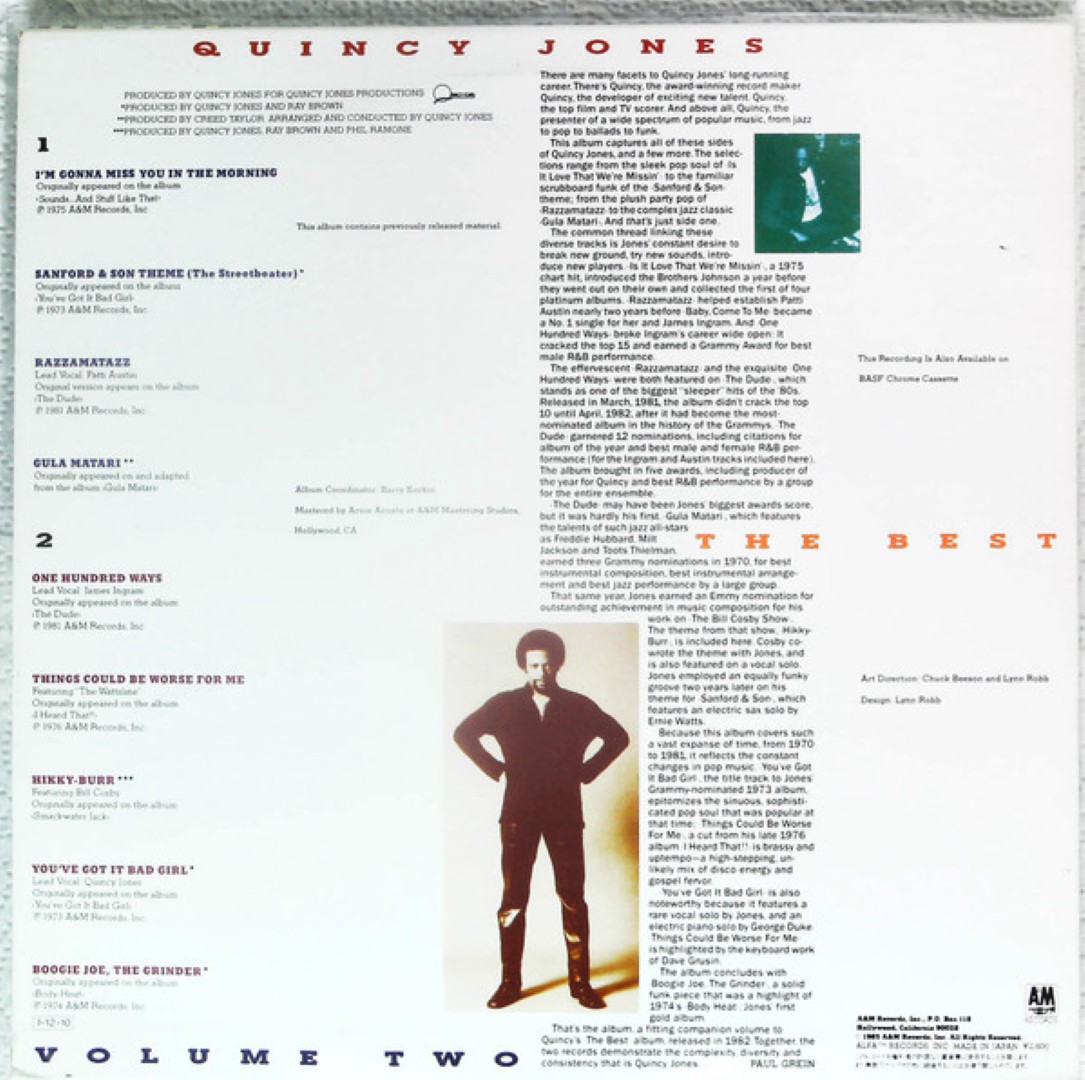 The Best Of Volume 2 წარმოადგენს Quincy Jones-ის შემოქმედების უფრო გროუვულ და ფანკურ მხარეს, სადაც თავმოყრილია მისი კარიერის სხვადასხვა პერიოდში შექმნილი ყველაზე ენერგიული და მახასიათებელი კომპოზიციები. ალბომი აერთიანებს ჯაზ-ფანკს, სოულს და ადრეულ დისკოს ელემენტებს.