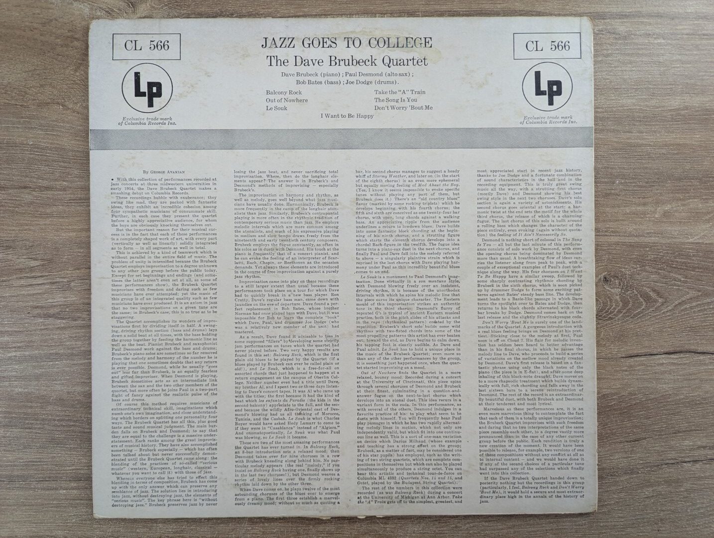 “Jazz Goes To College” (1954) არის The Dave Brubeck Quartet-ის ერთ-ერთი ადრეული და მნიშვნელოვანი ალბომი, ჩაწერილი ლაივ ფორმატში სხვადასხვა კოლეჯურ ღონისძიებებზე და გამოცემული Fantasy Records-ის მიერ. ალბომი ასახავს ბრუბეკის კვარტეტის ენერგიულ, თავისუფალ და ახალგაზრდულ ჟღერადობას, რომელმაც განსაკუთრებული პოპულარობა სწორედ სტუდენტურ აუდიტორიაში მოიპოვა.