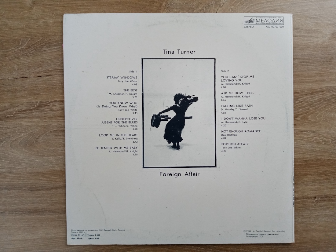 ამერიკელი მომღერლის, “ტინა ტერნერის”, მეშვიდე სტუდიური ალბომი, რომელიც გამოვიდა 1989 წელს. ალბომში შედის მრავალი ცნობილი ტრეკი, რომლებიც გამოიცა სინგლებად, ამ ტრეკებს შორისაა თავად თაითლ ტრეკიც. გასაყიდი ვინილი წარმოადგენს 1990 წლის “მელოდიას” საბჭოთა პრესს, ვინილის ყდაც და ფირფიტაც ორივე შესანიშნავ მდგომარეობაშია.